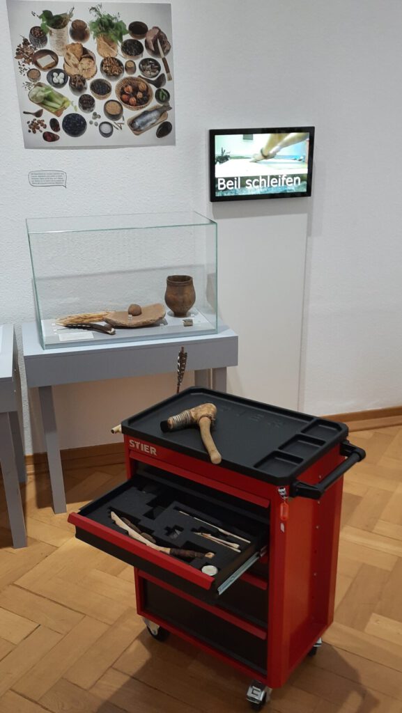 Bei dem unterhaltsamen Rundgang werden Besucher unter fachkundiger Anleitung von einem „Archäomobil“ begleitet – einem Handwagen, gefüllt mit Rekonstruktionen und Gegenständen, die zum Fühlen, Ertasten und Ausprobieren einladen. Die Gerätschaften zeugen von den erstaunlichen handwerklichen Fähigkeiten unserer Vorfahren.