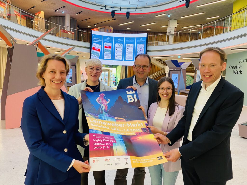 Bielefeld. Vom 28. Mai bis 1. Juni 2025 lassen es die Menschen aus Bielefeld und OWL wieder krachen: An fünf Tagen feiert die Region den Leineweber-Markt 2025. Los geht es am Mittwoch, 28. Mai, mit dem Auftakt-Konzert von Mighty Oaks auf dem Jahnplatz, gefolgt von MOGUAI am Donnerstag, 29. Mai. Einmaliges Extra in diesem Jahr zum 200. Geburtstag der Sparkasse Bielefeld: Am Samstagabend, 31. Mai, tritt Leony als weiteres Highlight auf der Sparkassen-Bühne auf.