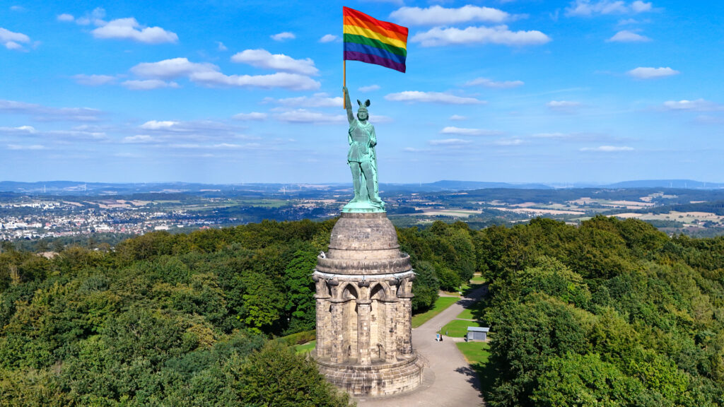 Detmold. Das Hermannsdenkmal hat in diesem Jahr viel Aufmerksamkeit auf sich gezogen – zu Recht, denn seit 150 Jahren steht es verlässlich auf der Grotenburg und ist DAS Identifikationssymbol für Lippe. In den zurückliegenden Wochen hat der Landesverband Lippe viele positive Rückmeldungen zu seinen Maßnahmen zur Attraktivierung des gesamten Areals erhalten und viele Gespräche über die heutige Bedeutung des Denkmals und den Wert von Freiheit und Demokratie geführt. „Wir möchten den Lippern dafür herzlich danken – mit einem kleinen Familienfest am Tag der deutschen Einheit – dem 3. Oktober 2025“, kündigt Verbandsvorsteher Jörg Düning-Gast an. Unter dem Motto „Der Hermann ist bunt“ können die Besucher gratis Musik, Poetry-Slam und Kinderangebote von 11:00 bis 18:00 Uhr erleben und genießen. „Mit diesem kleinen Fest wollen wir am Feiertag die Lipper einladen, mit uns die deutsche Einheit, und damit Demokratie und Freiheit sowie europäische Verbundenheit zu feiern. Diese Werte waren vor der deutschen Wiedervereinigung und sind gerade in der heutigen Zeit nicht selbstverständlich“, ist Düning-Gast überzeugt. „Vielfalt und Freiheit sind jedoch unabdingbar für eine Gesellschaft, in der alle Menschen, egal welcher Herkunft, Hautfarbe oder sexueller Orientierung, friedlich zusammenleben können.“