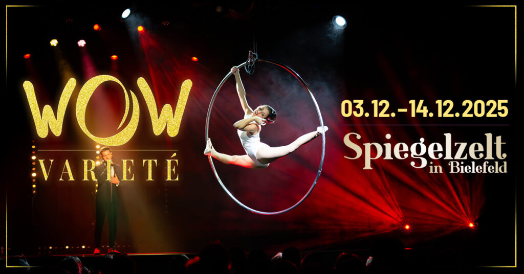 Bildquelle: Anton BelyakovBielefeld. Der allgemeine Vorverkauf für das Spiegelzelt in Bielefeld startet am 28.08.2025. Karten sind in allen Geschäftsstellen der Neuen Westfälischen, weiteren bekannten Vorverkaufsstellen und unter nw.de/events erhältlich. Weihnachtliche Stimmung, eine einzigartige Atmosphäre, exquisite Speisen und ein außergewöhnliches Showprogramm – das alles vereint das Spiegelzelt in Bielefeld unter einem samtbehangenen Dach. Nach drei erfolgreichen Jahren wird der Ravensberger Park im Herzen der Stadt zum vierten Mal in Folge mit dem Zauber der Vorweihnachtszeit erfüllt.