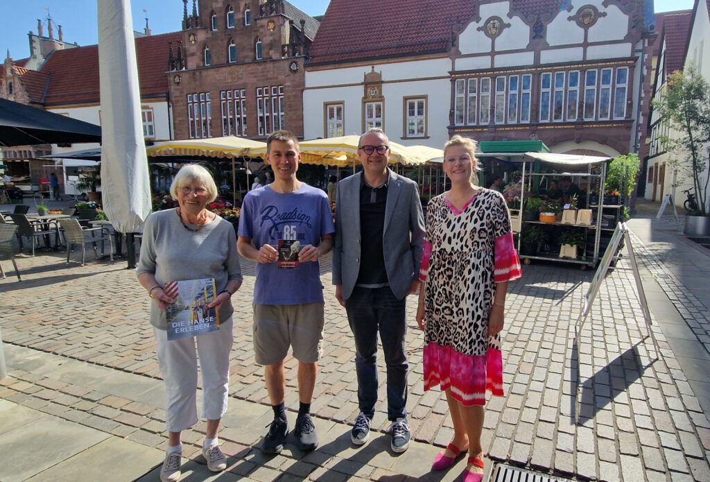 Bildquelle: Alte Hansestadt LemgoLemgo. So wird Neugier belohnt: Wer Städte der westfälischen Hanse besucht, kann am Ende des Jahres an einem Gewinnspiel teilnehmen. Ein Gewinner der letztjährigen Auslosung konnte vor Kurzem den gewonnenen Hotel-Gutschein in Lemgo einlösen und die Alte Hansestadt und ihre Umgebung ausführlich erkunden. Auch in diesem Jahr läuft das Gewinnspiel wieder bis Dezember. Für Peter Strauß haben sich die Ausflüge des letzten Jahres gelohnt: Er hat seine Besuche von westfälischen Hansestädten im Stempelpass der Hanse dokumentiert und ist so am Ende des Jahres im Lostopf des großen Gewinnspiels gelandet. Er hatte Glück und bekam einen 250-Euro-Gutschein für das Lemgoer Hotel Stadtpalais. So stand für ihn und seine Ehefrau das nächste Ausflugsziel schnell fest. Bürgermeister Markus Baier und Renate Bauer, Mitglied der Hansekommission des Rates, und Rabea Kruel, kommissarische Leiterin von Lemgo Marketing, begrüßten Peter Strauß. Auch in diesem Jahr läuft das Städtepass-Gewinnspiel der westfälischen Hanse. Für die Teilnahme muss man mindestens vier westfälische Hansestädte besuchen und dort Stempel sammeln. Das funktioniert, indem meist in den Touristinformationen Stempel im Papierpass gesammelt werden oder auch digital durch das Einscannen der ausgehängten QR-Codes. Der Einsendeschluss für die Pässe ist der 15. Dezember. Informationen dazu sind auf dem Pass zu finden. In Lemgo ist der Pass in der Touristinformation von Lemgo Marketing zu bekommen oder ONLINE.