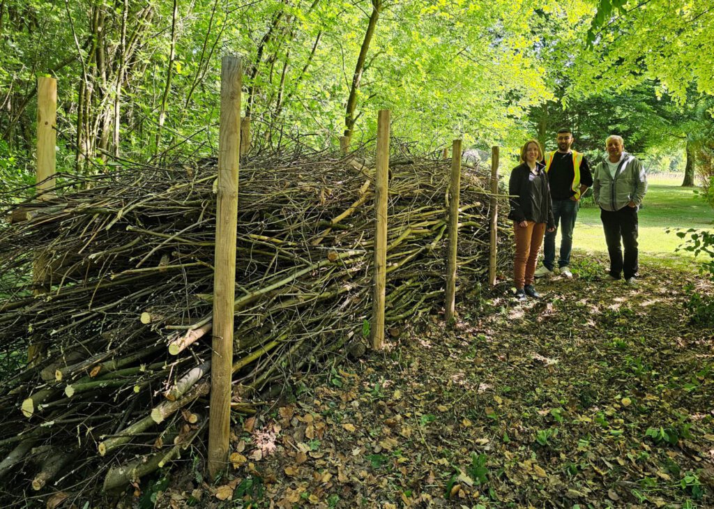 Bildquelle: Alte Hansestadt LemgoLemgo. Sie bietet Igeln, Insekten und weiteren Tieren einen Schlafplatz und einen Unterschlupf: Auf dem Friedhof Lüningheide gibt es seit Kurzem ein Benjeshecke. In Sichtweite der Kindergräber steht der neue Lebensraum für Tiere und Pflanzen aller Art. Weitere Maßnahmen für mehr Artenvielfalt sollen folgen. Personalratsvorsitzender Matthias Stock engagiert sich in der Igelhilfe und hatte seine Idee für mehr Igelschutz vorgestellt. Unterstützt von Bürgermeister Markus Baier, der Klimaschutzbeauftragten Ronja Post und Juan Daood von den Städtischen Betrieben Lemgo wurde die Benjeshecke im Frühjahr gerade rechtzeitig zur diesjährigen Brutsaison der Vogelwelt errichtet. Benjeshecken sind sehr vielseitig. Sie bestehen aus gestapeltem Schnittgut und allerlei Tiere fühlen sich in ihnen wohl: Vögel bauen zwischen den Ästen und Zweigen Nester, Igel schlafen dort, wirbellose Tiere lieben die Räume in den Hecken und einige Tiere überwintern sogar darin. Die Tiere tragen Samen in die Hecke, dadurch wachsen auch zahlreiche Pflanzen in und um Benjeshecken. Juan Daood (Städtische Betriebe Lemgo) kümmert sich um die städtischen Friedhöfe: „Wir haben unterschiedlichste Baum- und Gehölzarten in dieser Hecke. Das lockt eine Vielfalt von Tieren an. Außerdem haben wir so unterschiedliche Größen der Äste und Zweige und unterschiedliche Zeiträume, für die das Holz hier liegen wird.“ Das Nachfüllen wird kein Problem, fallen doch im Rahmen der Baumpflege jedes Jahr ausreichende Mengen an Baumschnitt an. Für die Zukunft haben die Städtischen Betriebe Lemgo schon weitere Ideen, beispielsweise ein Igelhaus aus Steinen von eingeebneten Gräbern, die die Angehörigen nicht mehr haben möchten. Auch Schnittzyklen werden stets überprüft, um durch längere Wachstumszeiträume mehr Lebensraum für Tiere zu bieten.