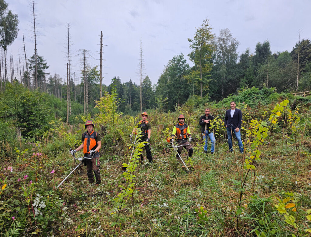 Bildquelle: Alte Hansestadt LemgoLemgo. Die Nachwuchskräfte der interkommunalen Forst-Kooperation von Lemgo und Bad Salzuflen kümmern sich derzeit um ein besonderes Projekt: Entlang des Bornsiekbachs im Lemgoer Stadtwald forsten sie eine Kalamitätsfläche auf. Auf fast 300 Metern pflanzen sie neue Bäume, um Wald und Bach Gutes zu tun. Die Lemgoer Staff-Stiftung unterstützt das Projekt. „Unsere Auszubildenden haben sich ganz genau angeschaut, womit sie es hier zu tun haben. Das reichte von der Entnahme von Bodenproben über eine Recherche über die Auswirkungen der umgebenden Pflanzenwelt auf den Bach bis zur richtigen Zusammenstellung der Baumarten“, beschreibt Förster Alexander von Leffern die Leistung der angehenden Fachmänner und Fachfrauen. Ursprünglich standen entlang des Bornsiekbachs Fichten. Die Nadelbäume haben jedoch die trockenen Jahre und den Borkenkäfer nicht überlebt. Nun kommen Pflanzen, die zum Standort passen, besser für den Bach sind und an dieser Stelle eine Zukunft haben. Zukünftig wachsen Elsbeere, Vogelkirsche, Flatterulme und Roterle am Bachlauf. Hinzu kommen weitere Pflanzen, von denen einige sich bereits ohne menschliches Zutun auf den Flächen angesiedelt haben und die für die Durchmischung erhalten bleiben. Bei ihrer Arbeit geht es den Auszubildenden unter anderem darum, den Boden und seine natürliche Leistungskraft zu stärken, die Trinkwasserbestände zu sichern und den Bestand zukunftssicher zu machen. Auch für den Bach ist ihre Arbeit relevant, denn je kleiner der Bach, desto größer der Einfluss der ufernahen Bäume. Das beginnt bereits bei der passenden Beschattung, weil zu viel oder zu wenig Licht die Wasserqualität beeinflusst. Und je besser die Löslichkeit von Sauerstoff, desto besser auch der Lebensraum für die Organismen im Wasser.