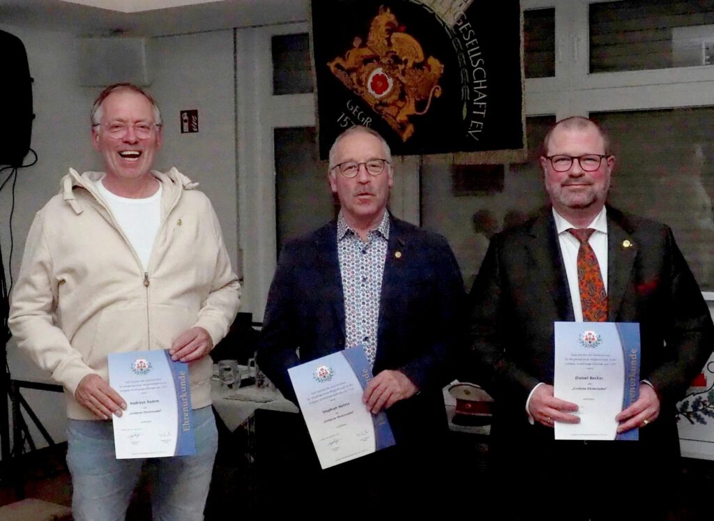 Wiedergewählt wurden Schriftführer Wilfried Thiel, der Hauptmann der 4. Kompanie Thomas Dulke, Stefan Steinmeier als Königsoffizier, Batallions-Schießoffizier Axel Hesse und Wolfgang Messow als Fahnenträger. Phillip Hillebrand ist neuer Fahnenträger. Ex-Königin Heike Rubart übernimmt als Leiterin die Damenschießgruppe. Andreas Ramm, Matthias Weber, Stephan Helms, Ulli Frevert, Daniel Becker und Martin Becker wurden darüber hinaus für ihre 40-jährige Mitgliedschaft geehrt.