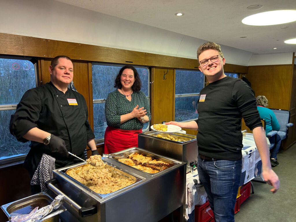 Nordlippe. Unter Hochspannung startet der Museumszug der Landeseisenbahn Lippe am 21. März, gezogen von der originalen Extertalbahn-Elektrolok 22, in die Saison 2026. Die Auftaktfahrt in diesem Jahr ist der Schlemmerexpress – ein kulinarisches und ereignisreiches Erlebnis für die ganze Familie. Die Fahrt mit dem historischen Zug beginnt um 17 Uhr am Bösingfelder Bahnhof, geht von dort aus über Alverdissen nach Barntrup und wieder zurück. Im Zug gibt es ein klassisches Krustenbratenbuffet mit Bayrisch Kraut aus regionaler Herkunft. Zudem werden ein Getränk und ein kleines Dessert im Rahmen des Fahrpreises serviert. Die Fahrt inkl. des Aufenthaltes für den Gang zum Buffet wird etwa dreieinhalb Stunden dauern. Da der Zug bewirtschaftet wird, ist das Mitbringen eigener Speisen und Getränke nicht gestattet. Während der gesamten Fahrt stehen Servicemitarbeiter bereit, den Fahrgästen Getränke an die Plätze zu bringen. Für Erwachsene kostet das Schlemmerexpress-Ticket 45,- €, für Kinder (3 bis 12 Jahre) liegt der Fahrtpreis bei 34,- €. Der Erwerb von Fahrscheinen ist nur Online mit verbindlicher Reservierung möglich.