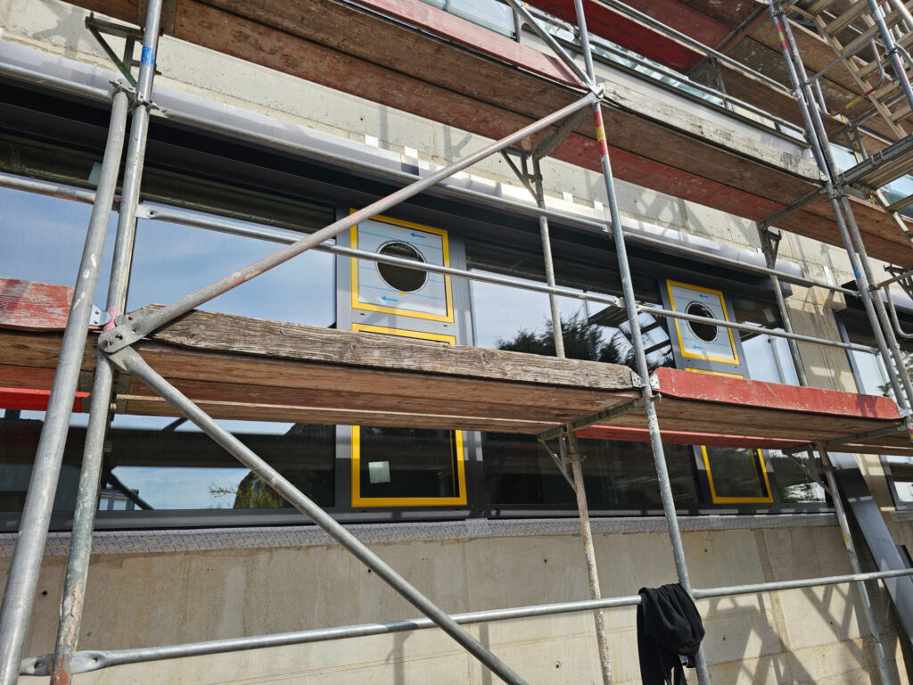 Bildquelle: Stadt LemgoLemgo. Es sind Ferien, aber gearbeitet wird am Marianne-Weber-Gymnasium trotzdem: Es geht voran bei den Arbeiten für den Anbau. Kürzlich sind die Fenster eingesetzt worden, und auch andere Fortschritte machen sich bemerkbar. Der Fokus geht nun über auf den Innenausbau. Zum neuen Schuljahr sollen die Räume fertig sein. Neun Klassenräume im Trakt A werden mit 75 anstatt 50 Quadratmetern mehr Platz für die Lehrkräfte und Klassen bieten. Dazu wurde an den Trakt angebaut. Die Außenwand ragt nun gut 3,20 Meter weiter vor als vor den Bauarbeiten. Optisch wird die Erweiterung zukünftig nicht auffallen, denn die Gestaltung des Anbaus orientiert sich am Rest des Gebäudes.