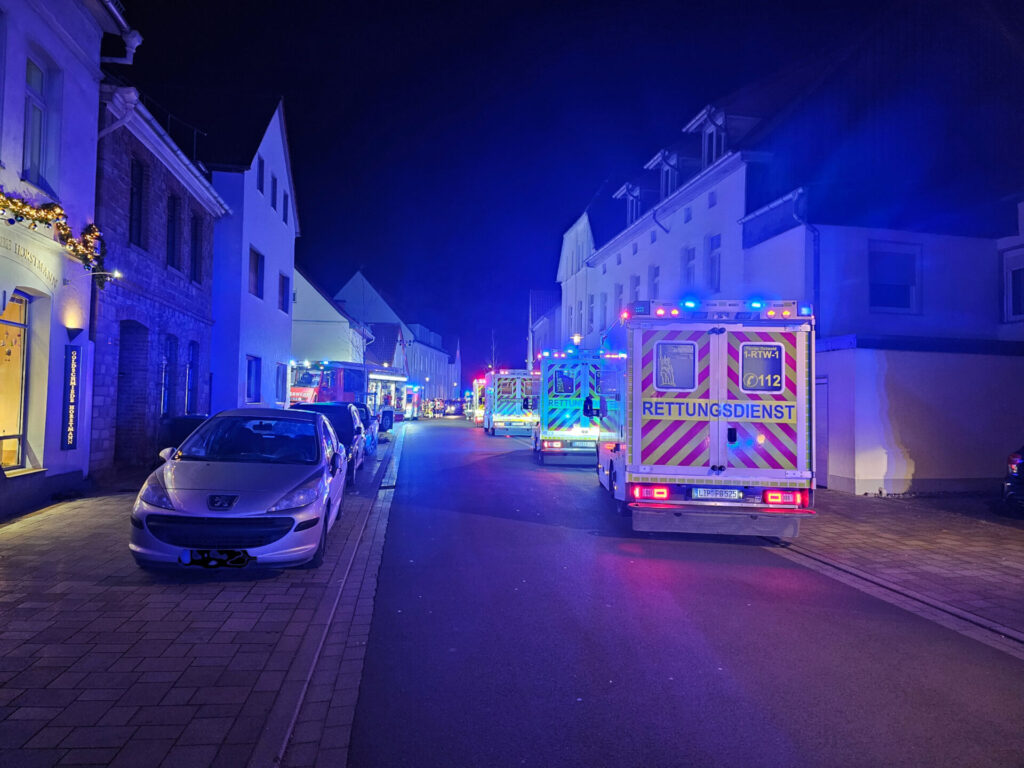 Bildquelle: Freiwillige Feuerwehr LemgoLemgo. Am Donnerstag, 18.12., wurde die Freiwillige Feuerwehr Lemgo zu einer MANV-Lage (Massenanfall an Verletzten) in der Schuhstraße alarmiert. Vor Ort gab es acht Verletzte, von denen die Ersten den Einsatzkräften bereits entgegen kamen, heißt es in einer Pressemitteilung der Feuerwehr. Im betroffenen Haus wurde von zwei Trupps mit Atemschutzausrüstung eine erhöhte Kohlenmonoxid-Konzentration gemessen. Die Einsatzkräfte haben das Haus daraufhin gelüftet. Die Feuerwehr war mit dem Löschzug Lemgo und der Löschgruppe Lieme vor Ort, der Rettungsdienst mit fünf Rettungswagen und drei Notärzten, die Polizei Lippe war im Einsatz, und auch das DRK rückte mit seinen MANV-Komponenten aus. Die Verletzten wurden ins Krankenhaus gebracht. Das Nachbarhaus wurde durch die Feuerwehr ebenfalls kontrolliert, dort wurden keine Probleme festgestellt. Die Feuerwehr unterstützte bei der Betreuung der Verletzten. Der Einsatz der Feuerwehr war gegen 22 Uhr beendet.