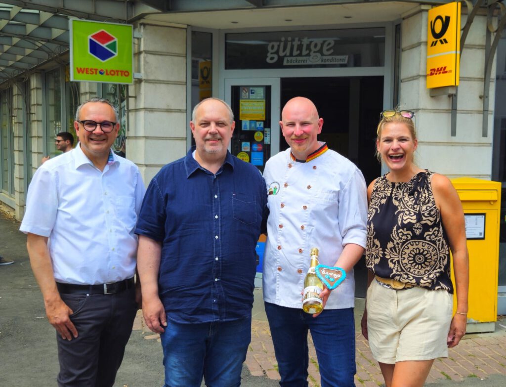 Bildquelle: Andreas LeberLemgo. Peter Schulz ist ab sofort der neue Pächter der Postfiliale in der Breiten Straße in Lemgo. Er wird hier neben einem Wäscherei- und Postservice auch wieder eine Lottannahme anbieten. Für die Bäckerei wurde mit Bäcker Jan Fuhlhage aus Voßheide ebenfalls ein neuer Betreiber gefunden. Er wird in Zukunft ein breites Sortiment an Brötchen und Kuchen für seine Kunden bereithalten. Oliver Güttge, der das Geschäft zuletzt betrieben hat, wird ihn dabei zusätzlich mit Strohsemmeln und verschiedenen Brotsorten unterstützen. Große Freude auch bei Bürgermeister Markus Baier und der kommissarischen Geschäftsführerin von Lemgo Marketing Rabea Kruel, die froh sind das es dort nun doch weiter geht.