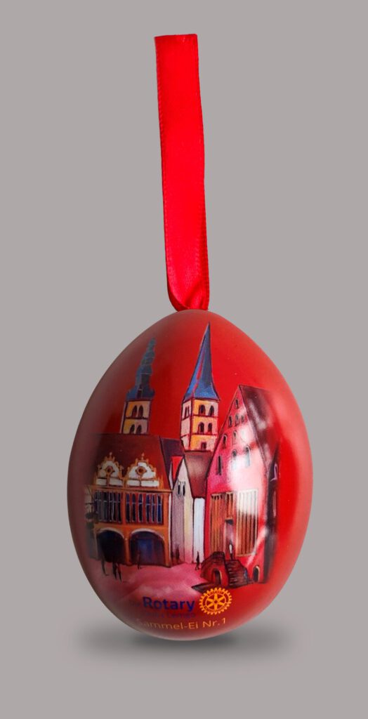 Bildquelle: Rotarier LemgoLemgo. Die Rotarier bieten zum diesjährigen Osterfest eine besondere Aktion an. Wer möchte, kann ein so genanntes Glückseier erwerben. Die dekorativen Metalleier, die vom Lemgoer Künstler Eckhard Siekmann gestaltet wurden, werden zum Start der Aktion in einer limitierten Sammleredition (5000 Stück) mit drei verschiedenen Motiven angeboten. Mit jedem Glücksei erwerben die Käufer dabei nicht nur ein dekoratives Unikat, sondern auch ein Los für attraktive Preise. Der Hauptgewinn ist ein hochwertiges E-Bike im Wert von 4.500 Euro, gesponsert vom Zweirad Center DEDE aus Lemgo. Weitere exklusive Sachpreise und Aktionen warten darüber hinaus auf die Käufer. Die Gewinner können am Ostersonntag auf gluecksei-lemgo.de nachsehen, ob ihr Ei gewonnen hat.