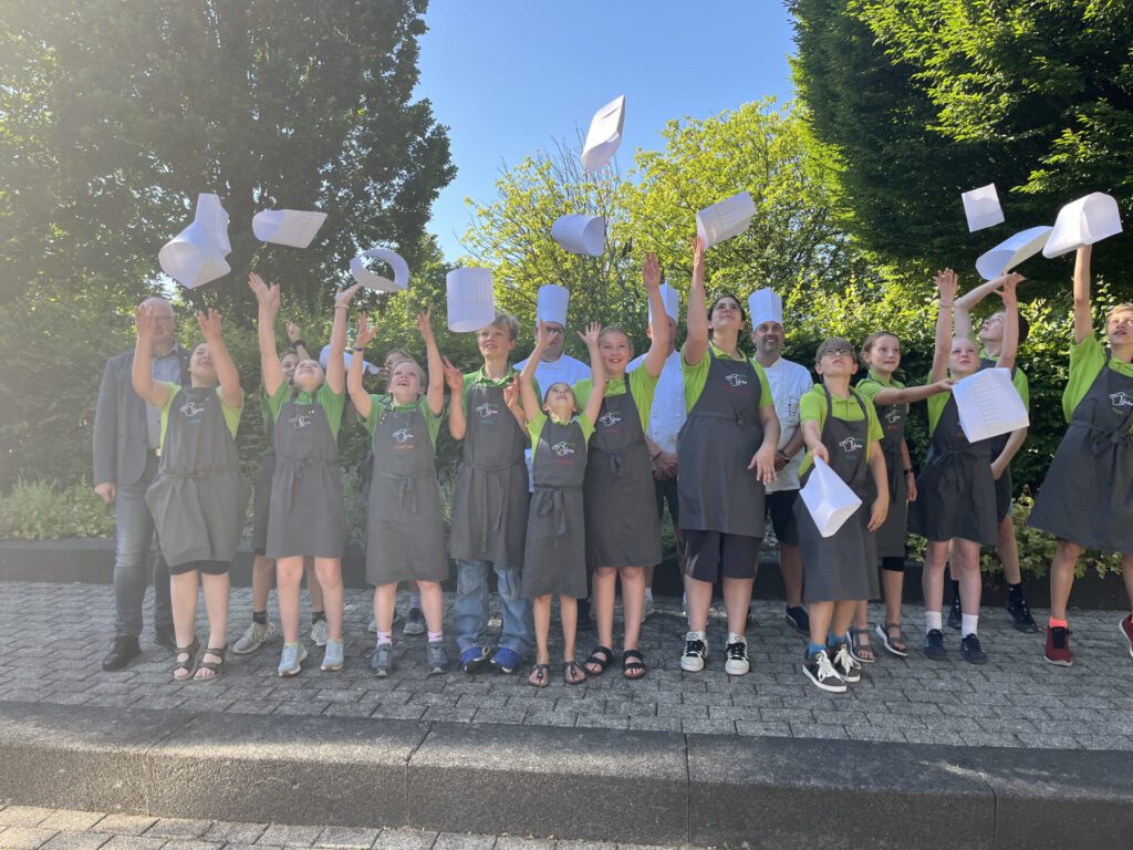 Bildquelle: IHK LippeLippe. In der Industrie- und Handelskammer Lippe zu Detmold wurden 16 Kinder feierlich als neue „Miniköche Lippe“ verabschiedet. Nach erfolgreichem Abschluss ihrer theoretischen sowie praktischen Prüfung wurden die Miniköche, ähnlich wie die „großen Köche“, mit einer feierlichen Zertifikatsübergabe nach zwei Jahren Ausbildung gefeiert. Anja Limberg, Vorsitzende des Köcheclubs Lippe und Teamleiterin der Miniköche, hob besonders die Entwicklung der Kinder in den vergangenen zwei Jahren hervor: „Mit Blick auf die Ergebnisse eurer Abschlussessen macht ihr mir und meinen Kollegen schon jetzt ein bisschen Konkurrenz“, so Limberg mit einem Augenzwinkern. Es sei toll, dass die Kinder sich über einen so langen Zeitraum mit Freude, Neugier und Teamgeist in das Projekt eingebracht hätten. Das Projekt „Miniköche Lippe“ wird von der IHK Lippe seit 2014 in Kooperation mit dem Köcheclub Lippe durchgeführt. In der Abschlussveranstaltung wurde die mittlerweile fünfte Gruppe der Miniköche geehrt. Einige der ehemaligen Miniköche befinden sich inzwischen in der Berufsausbildung oder haben diese bereits erfolgreich abgeschlossen. Die Ausbildung der kleinen Köche umfasste neben dem Kochen und dem Mixen alkoholfreier Cocktails auch Themen wie Hygiene, regionale Warenkunde, Service und Ernährungslehre. Vier Miniköche wurden für ihr besonderes Engagement und ihre Leistungen mit einem Kochmesser ausgezeichnet. Im Herbst 2025 startet ein neuer Jahrgang der Miniköche Lippe – organisiert vom Köcheclub Lippe und der IHK Lippe. Teilnehmen können Kinder im Alter von neun bis elf Jahren. Für weitere Informationen zu den Miniköchen steht Teamleiterin Christina Flöter unter der Telefonnummer 05231 7601-640 oder per E-Mail unter minikoeche@detmold.ihk.de gerne zur Verfügung.