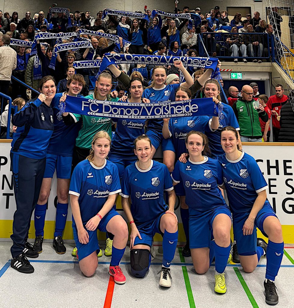 FC Coach Deborah Zaus: „Natürlich ist die Enttäuschung erst einmal groß, wenn man solch ein Finale verliert. Ich denke aber trotzdem, dass wir ein finalwürdiges Spiel gezeigt haben und auch mit dem lippischen Vizemeistertitel ganz gut leben können, denn die Mädels haben alles gegeben, sich aber leider mit einigen liegengelassenen guten Torchancen nicht belohnen können. Ich bin trotzdem sehr stolz auf meine Mannschaft, wie sie hier als Team und sportlich fair aufgetreten sind. Wir richten jetzt den Blick nach vorne, unser Hauptaugenmerk liegt auf der Liga, wo wir im März wieder angreifen wollen. Es sind jetzt erst mal zwei Wochen Pause, dann beginnen wir mit der Vorbereitung draußen. Am 22.02. steht um 13.00 Uhr ein Vorbereitungsspiel beim Landesligisten SV Kollerbeck an.“