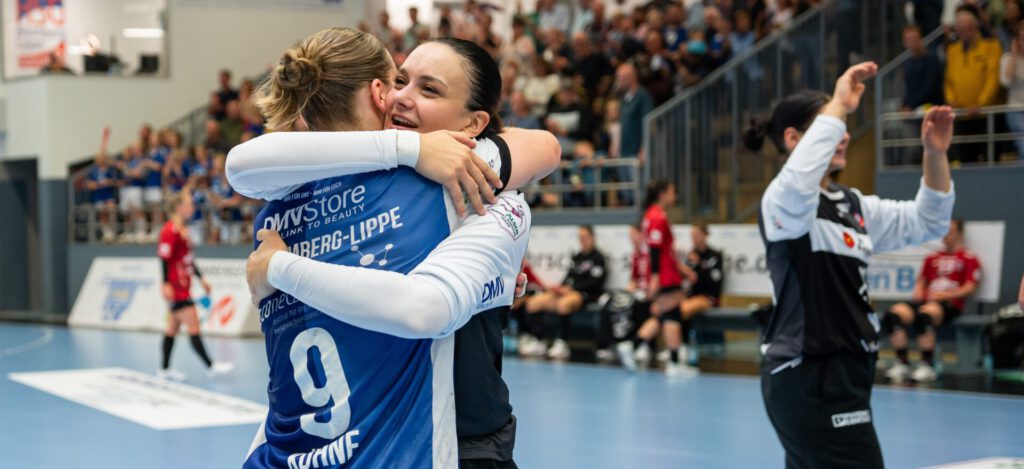 „Das waren heute zwei sehr gute Abwehrreihen. Meine Mannschaft hat es geschafft, über 60 Minuten Moral zu zeigen und das Publikum leise zu bekommen. Wir nehmen jetzt die zwei Punkte mit nach Blomberg. Ich bin stolz auf meine Mannschaft“, fasste Laura Rüffieux die intensive Partie zusammen.
