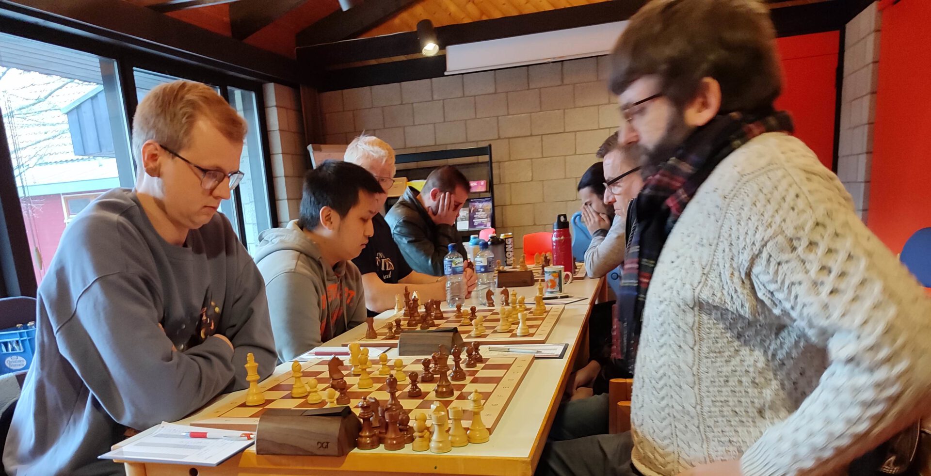Anschließend geschah auf den restlichen drei Brettern nicht allzu viel bis zur immer näherkommenden Zeitkontrolle nach 4 Stunden Spielzeit. Die hoch favorisierten Liemer spielten an allen Brettern immer ungenauer und so konnte Cang Lu, nach einem übereilten Läuferopfer seines Kontrahenten Joachim Stork, eine Gewinnstellung erzeugen, welche er in der Zeitnotphase solide zu Ende spielte. Mit seinem Sieg glichen die Gäste aus Barntrup zum 1:1 aus.