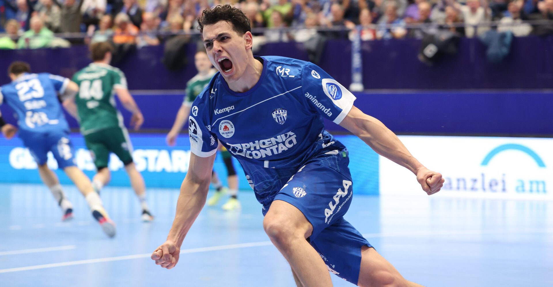 Der TBV fand zunächst schleppend in die Begegnung und fand seinen Meister in ThSV-Keeper Matija Spikic, der in der Anfangsviertelstunde bereits mit fünf Paraden (56% gehaltene Bälle) glänzte. Sein Gegenüber, Constantin Möstl, stand Spikic jedoch in nichts nach und stoppte einen Durchbruch des starken Felix Aellen mit seiner 4. Parade. Sein optisches Übergewicht sollte der TBV jedoch erst nach 24 Minuten auch auf der Ergebnistafel sichtbar machen: Joel Willecke startete mit seinem Treffer zum 9:8 (24.) einen 4:0-Lauf, den Versteijnen mit einem Strahl aus dem Rückraum zum 12:8 (26.) veredelte. Auch Jan Mudrow gelang in dieser Phase sein Premierentor in der heimischen Phoenix Contact-Arena. Mit der letzten Aktion der ersten Halbzeit verpasste Willecke jedoch die Führung sogar auf fünf Tore auszubauen. Zwar landete sein Wurf im Netz der Eisenacher, doch die Schiedsrichter entschieden auf abgestanden. Folgerichtig ging es mit einer 13:9-Führung in die Pause.