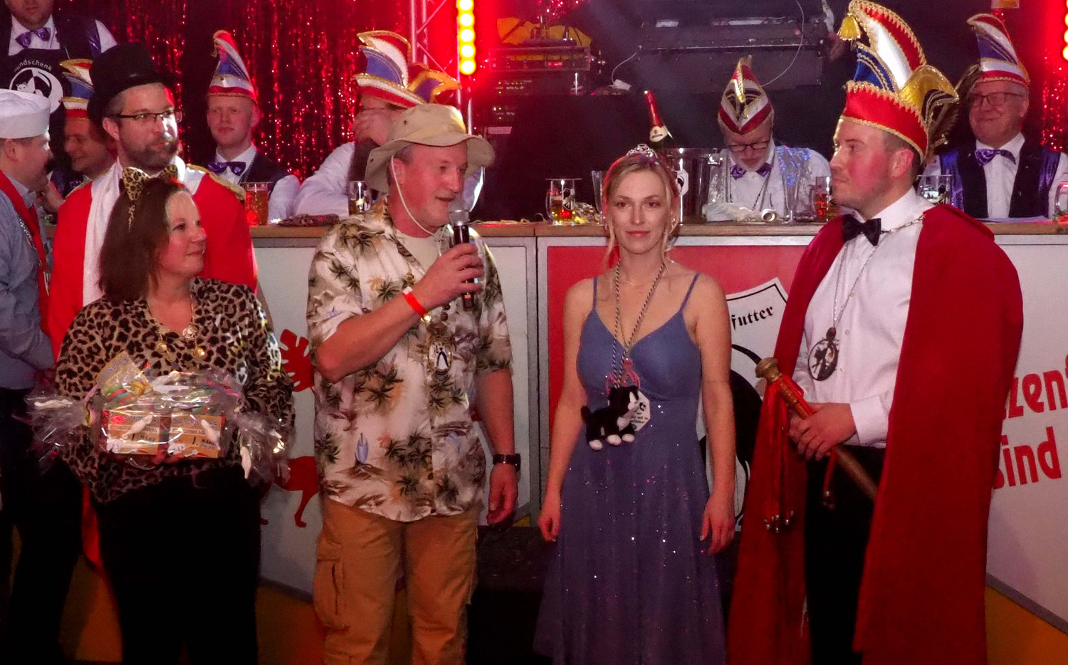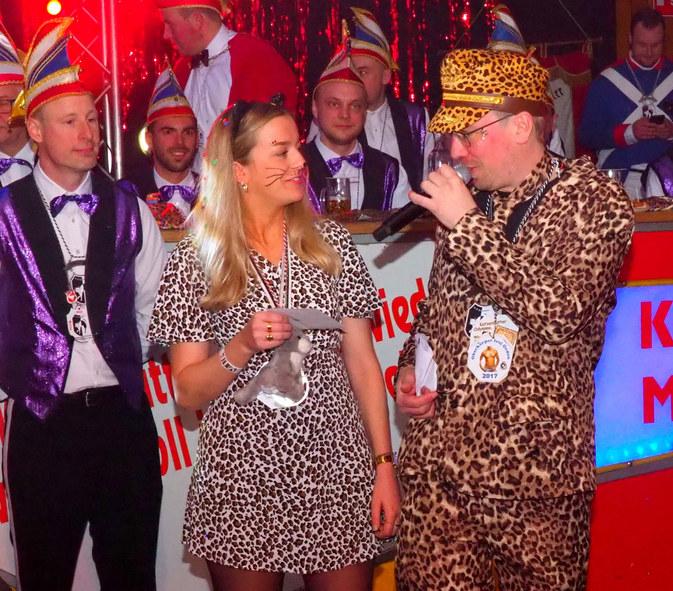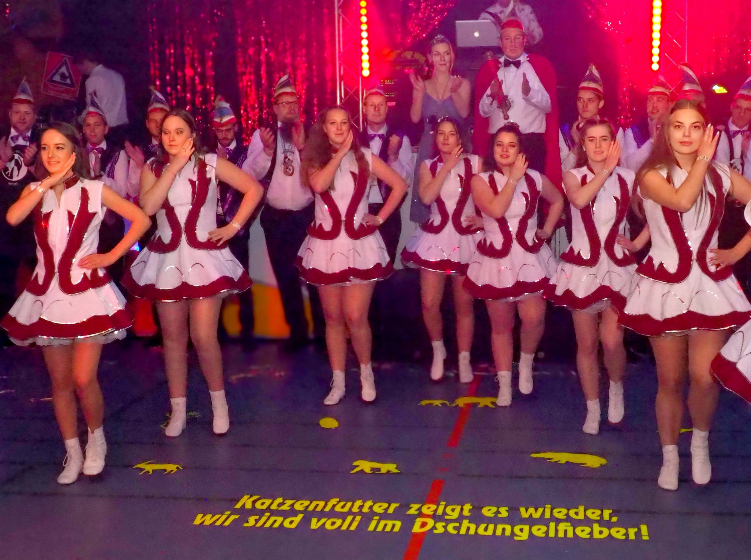 Voßheide. Rund 400 verkleidete Narren stürmten am Samstag die Mehrzweckhalle in Voßheide um hier ihren Katzenfutter-Karneval, unter dem Motto „Katzenfutter zeigt es wieder, wir sind voll im Dschungelfieber!“ zu feiern. Mit Spannung erwartete die illustre Karnevalsgesellschaft dabei den Auftritt des neuen Prinzenpaares. Um Punkt 19:11 Uhr war dann es soweit: Jenny I. Schröder und ihr Prinz Andreas III. Waschmann fuhren mit ihrem „Pfötchen“ in die Halle ein. Samt ihrem großen Gefolge wurde das neue Prinzenpaar dabei begeistert von den Jecken gefeiert. Feinste Partymusik mit „DJ Mino“. Mit den Auftritten der Jazz-Cats, den Cheery Kitten und weiteren Akteuren den ganzen Abend hinweg ein Karnevalsprogramm, das sich sehen und hören lassen konnte. Eine rundum gelungene Veranstaltung und ein perfekter Einstieg in die laufende Karnevalssaison. Fotos: A.Leber